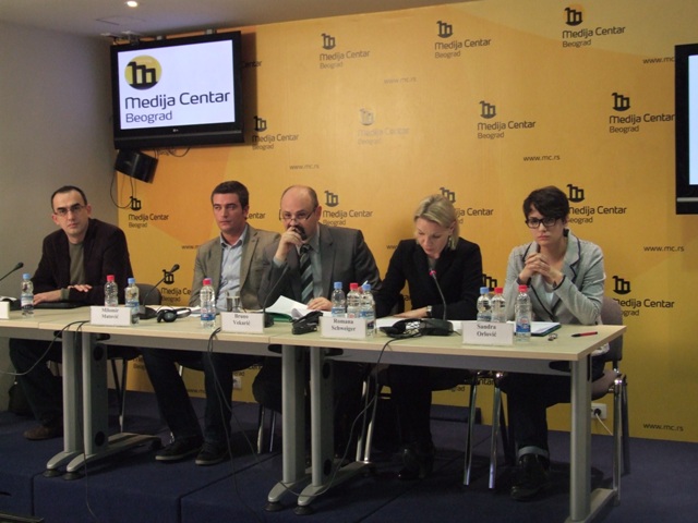A debate on war crimes trials in Serbia was held on Thursday, January 17th, 2013 in the Media Center in Belgrade. The Humanitarian Law Center (HLC) organized the debate anent the presentation of its Report on War Crimes Trials in 2012. Representatives of the Office of the War Crimes Prosecutor (OWCP), the Higher Court in Belgrade, the Court of Appeals in Belgrade, representatives of the OSCE, EULEX, the Office for Human and Minority Rights, the Higher Courts in Niš and Prokuplje, Embassies, the Ministry of Justice and the state administration, and of non-governmental organizations attended the debate.