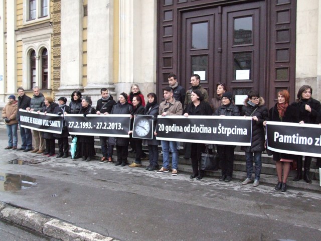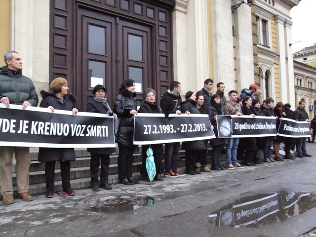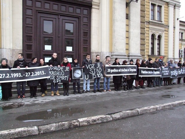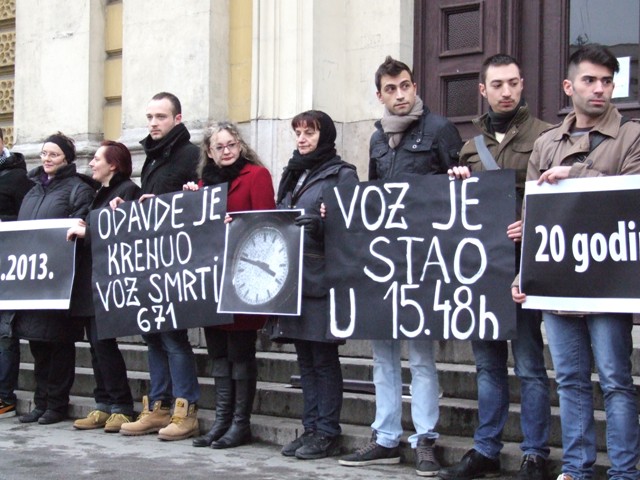 Women in Black, the Youth Initiative for Human Rights, and the Humanitarian Law Center (HLC) marked the twentieth anniversary of the kidnapping in Štpci. Approximately 40 citizens gathered in front of the Belgrade Main Railway Station and held banners which said, “The death train took off from here” “The train stopped at 15:48”, “We remember the crime in Štrpci” and “It is a crime to forget a crime”.