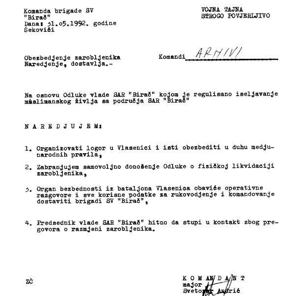 FHP u krivičnoj prijavi navodi i da je u maju i junu 1992. godine, brigada kojom je komandovao Svetozar Andrić proterala bošnjačko stanovništvo iz više od 20 sela u opštini Vlasenica. U martu naredne godine, pripadnici brigade kojom je Andrić komandovao spalili su selo Gobelje u opštini Vlasenica, piše u prijavi.
