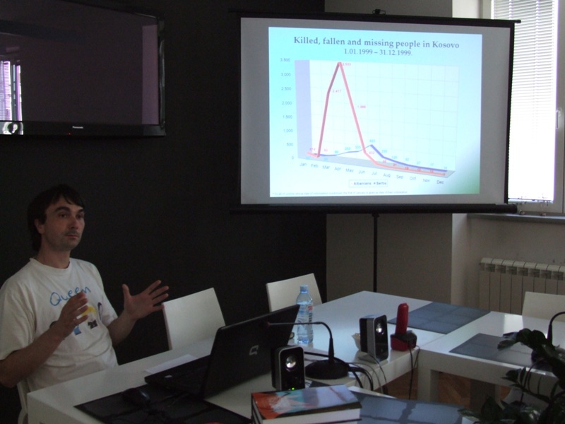 Predstavnici FHP-a su sa gostima razgovarali o procesu tranzicione pravde, problemima sa kojima se susreće društvo u Srbiji u procesu suočavanja sa prošlošću i radu FHP-a. Razgovaralo se o doprinosu FHP-a u procesu pomirenja u zemljama bivše Jugoslavije, suđenjima za ratne zločine, zastupanju žrtava u procesima za nadoknadu nematerijalne štete i pravu žrtava na reparacije. Pored toga, gostima je predstavljena baza podataka FHP-a o ljudskih gubicima, kao i proces REKOM.
