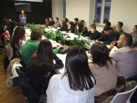 Drejtoresha a FDH-së për zhvillim të programit dhe informim Jelena Krstiq ka biseduar me vizitorët lidhur me përpjekjet shumëvjeçare të FDH-së për të ndriçuar rëndësinë e vendosjes së drejtësisë për krimet e kryera gjatë konflikteve të armatosura në ish Jugosllavi. Në këtë kuptim, ajo ka vënë në spikamë mungesën e një përcaktimi zyrtar strategjik për ballafaqim me të kaluarën, procesimin pamjaftueshëm efikas të personave përgjegjës për krimet luftës, injorimin e të drejtave të viktimave në reparacione si dhe qëndrimin e gjithmbarshëm apatik të shoqërisë ndaj krimeve të kryera. Aktivistët e rinj posaçërisht kanë qenë të intriguar nga mosndëshkimi i gjerë i krimeve të luftës, kurse kanë diskutuar edhe për mënyrat se si viktimat e shkeljes së të drejtave të njeriut në Serbi mund të marrin kompensimin e dëmit dhe pranimin, për qëndrimin e mediave ndaj krimeve, angazhimin e institucioneve dhe nismat e shoqërisë civile për konstatimin e së vërtetës mbi krimet dhe viktimat.